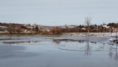 Danima je Sportski ribnjak Jezero pod finim slojem leda koji se danas lagano topi. Led se formirao gotovo cijelom površinom.…